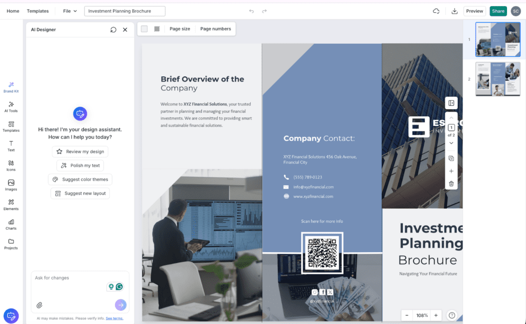 The platform’s intuitive approach means you don’t need design expertise to create impactful visuals. Whether you’re highlighting key metrics through graphs, illustrating project timelines, or adding supporting images, Piktochart’s AI tools ensure your case studies are visually engaging and professionally presented, all while significantly reducing production time.